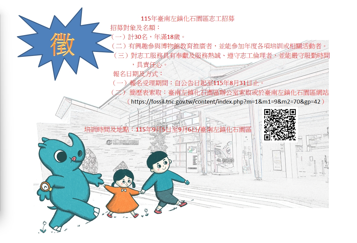 115年臺南左鎮化石園區志工招募培訓計畫